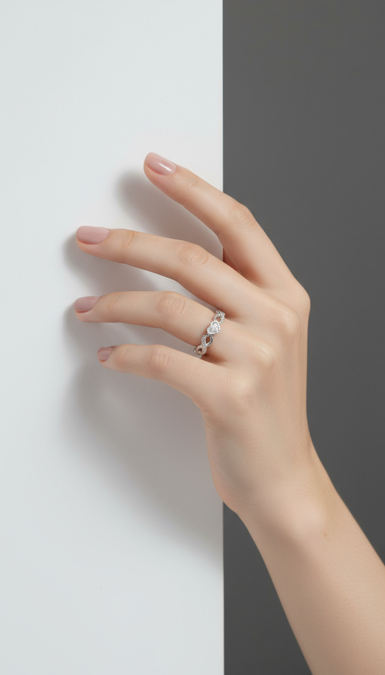 92.5 silver ring with little hearts studded in AD stones, perfect for daily wear, or any occasion to complete the look