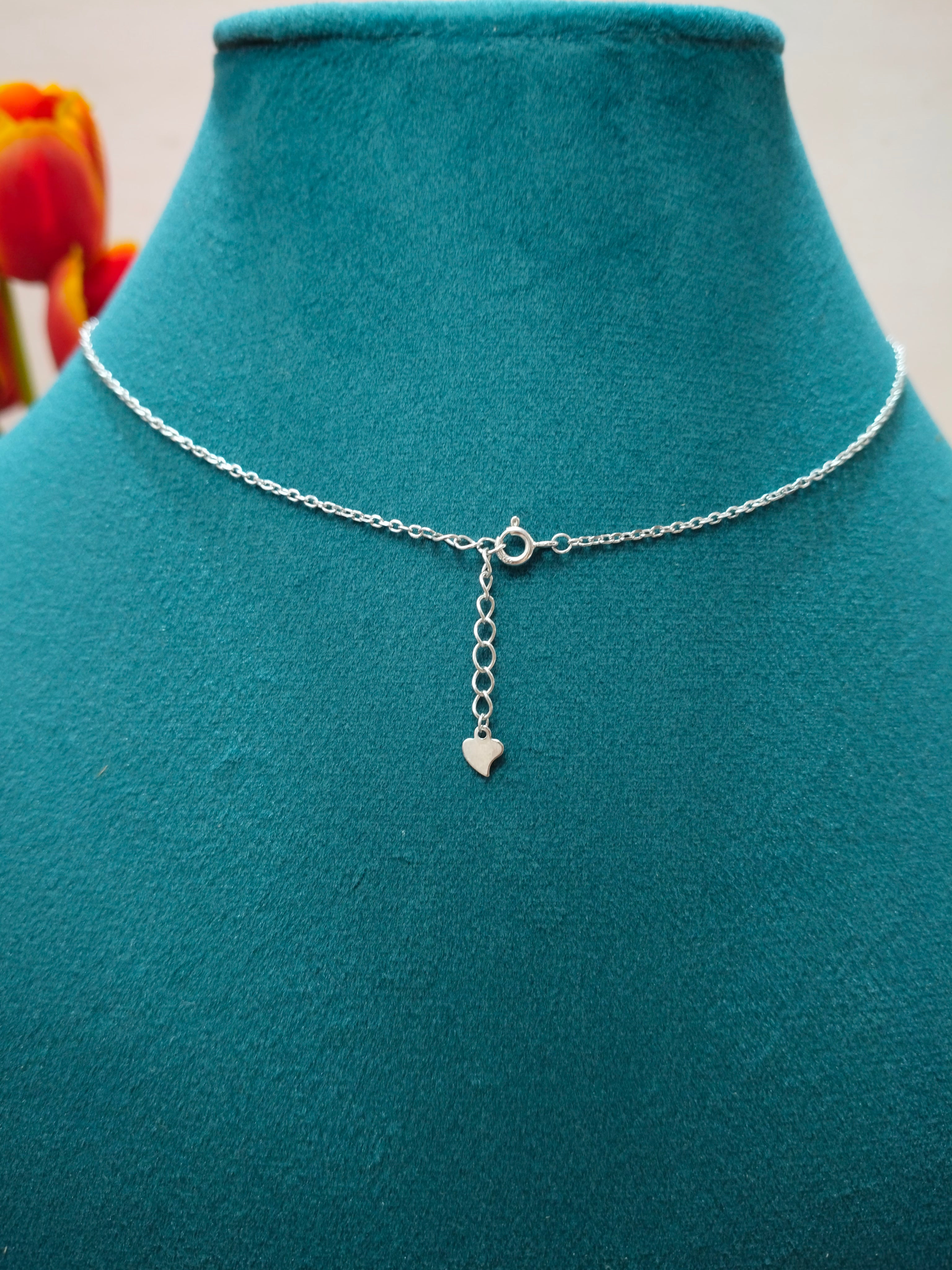 Silver pearl pendant with chain with extended links